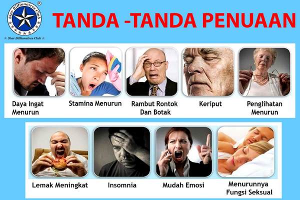 Penuaan selalu di tandai dengan berbagai gejala yang mengganggu kesehatan, antara lain: